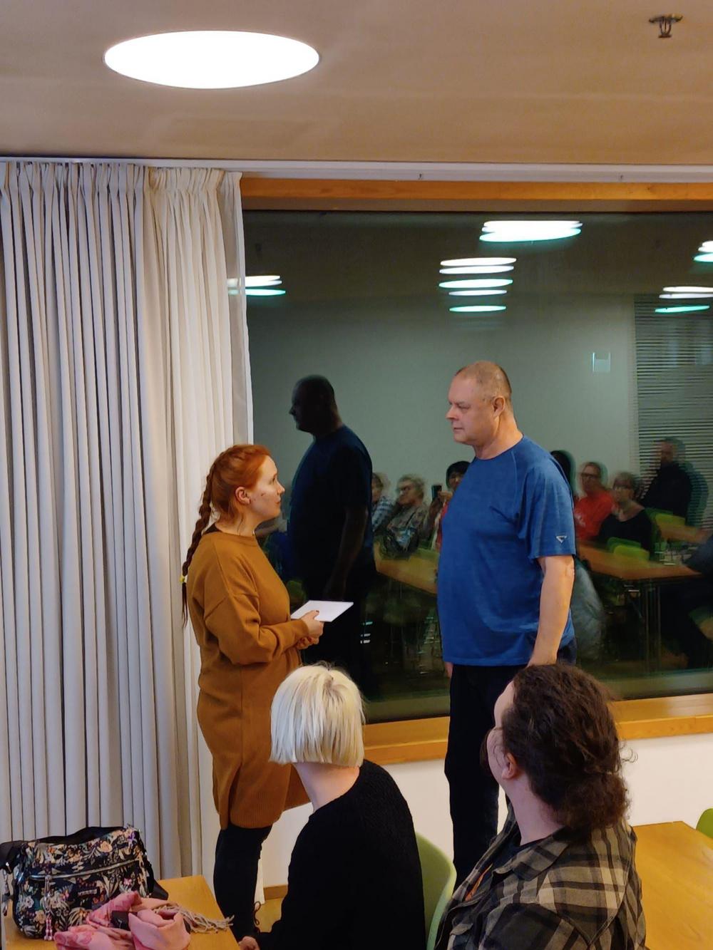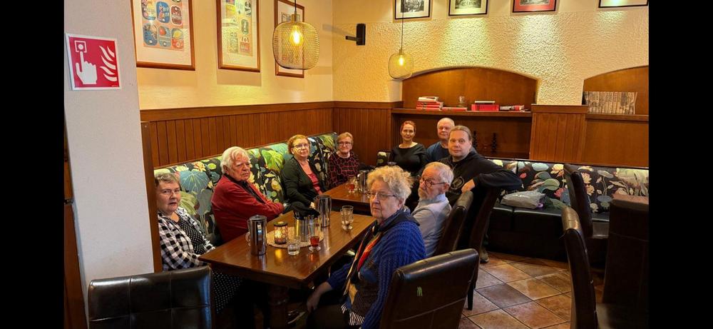 Liisa Hangonmäki, Aulis Laakso, Hilu Hopeasaari, Virpi Heikkinen, Mia Hellström, Seppo Liukkonen, Ari Uusimäki, Matti Törrönen ja Kirsti Ikonen. Valitettavasti muutama kutsutuista joutui perumaan osallistumisensa. Mielestäni onnistunut ja välitön tilaisuus. Pöydän työhistoria alkoi 60-luvun alkupuolelta, ay-toimintaan mukaan samalla kymmenellä. Mahtavaa porukkaa ! Tämä oli myös näyttö siitä, että nykyisinkin yhdistys toimii virkeästi jäsenistön hyväksi. Kiitoksia Mia ja Ari !
